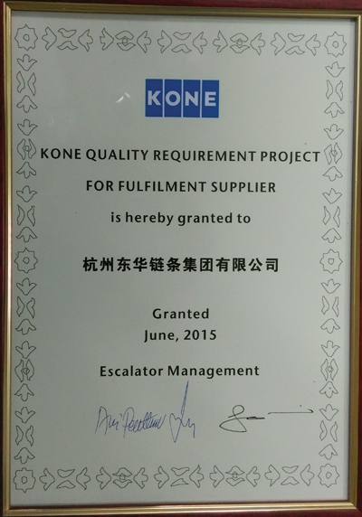 6月16日,東華扶梯鏈?zhǔn)聵I(yè)部通過通力公司“最低質(zhì)量要求”的審核,獲得合格質(zhì)量證書。東華是通力公司全球供應(yīng)鏈中獲得此榮譽(yù)的首批10家供應(yīng)商之一,也是獲得此榮譽(yù)的唯一鏈條供應(yīng)商,這是對東華扶梯鏈產(chǎn)品質(zhì)量的高度認(rèn)可。