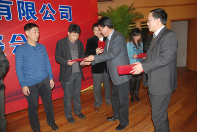 隨后,董事長宣碧華、董事長助理張世強向獲得2010年優(yōu)秀經(jīng)銷商的15位代表頒發(fā)了證書,并合影留念。