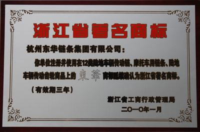 日前,東華集團(tuán)注冊(cè)并使用在12類(lèi)陸地車(chē)輛傳動(dòng)鏈、摩托車(chē)用鏈條、陸地車(chē)輛傳動(dòng)齒輪商品上的“東華”商標(biāo)被浙江省工商行政管理局復(fù)評(píng)為浙江省著名商標(biāo)。