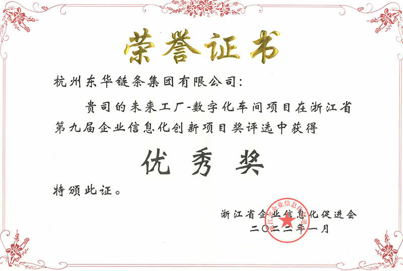 日前,由浙江省企業(yè)信息化促進會舉辦的浙江省第九屆企業(yè)信息化創(chuàng)新項目獎評選中,東華以板式鏈事業(yè)部制造車間為標桿的未來工廠——數(shù)字化車間項目在該評選中獲得優(yōu)秀獎,表明東華在智能制造領(lǐng)域再創(chuàng)佳績。