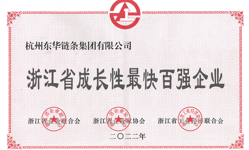 日前,東華鏈條集團被浙江省企業聯合會、浙江省企業家協會、浙江省工業經濟聯合會授予“浙江省成長性最快百強企業”榮譽稱號。