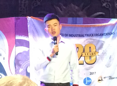 9月26日晚,東華設晚宴招待與會嘉賓,副董事長宣成用中英文致辭。通過晚宴上的互相溝通,日本三菱、永恒力、林德等叉車企業的代表更加深了對東華的印象。