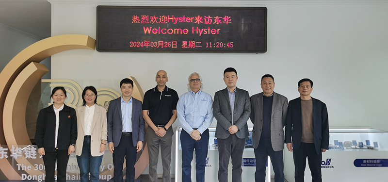 本次客戶來訪是繼3月20日東華代表參加Hyster全球供應(yīng)商大會(huì),雙方交流后,應(yīng)東華之邀來訪。雙方會(huì)談熱情中肯,東華團(tuán)隊(duì)通過宣傳視頻及資料向客戶展示了東華鏈條近年的全球市場(chǎng)定位及發(fā)展、板式鏈興化基地的建設(shè)、近年雙方合作、樣品開發(fā)、采購(gòu)等情況。Hyster管理團(tuán)隊(duì)一行向東華介紹了其全球業(yè)務(wù)、全球工廠的發(fā)展情況,以及當(dāng)前亞太地區(qū)供應(yīng)鏈的目標(biāo)與要求。希望東華在產(chǎn)品競(jìng)爭(zhēng)力、質(zhì)量、成本、服務(wù)上提升。