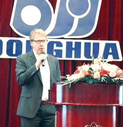 東華收購的德國KOBO公司總經理Bovenkamp先生就全球化和一體化資源整合進行了發言。