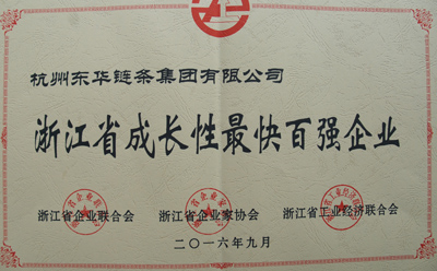 會上隆重表彰了8家2016年浙江省第二屆工業大獎金獎單位和9家銀獎單位,東華鏈條集團榮獲“浙江省工業大獎銀獎”稱號,同時躋身“2016年浙江省制造業百強”第87位和“2016年浙江省成長性最快百強企業”第58位。東華鏈條集團生產的“分動箱無聲鏈條”和“帶油杯梯級鏈條”榮登2016年浙江省優秀工業產品榜單。由東華鏈條集團報送的“適應新生代應屆生特點的入職培養”榮獲2016年浙江省企業管理現代化創新成果二等獎。以上獎項由企業申報,專家組現場考評后,經過相關部門領導及專家組進行初選、評審、決選和社會公示等程序產生。