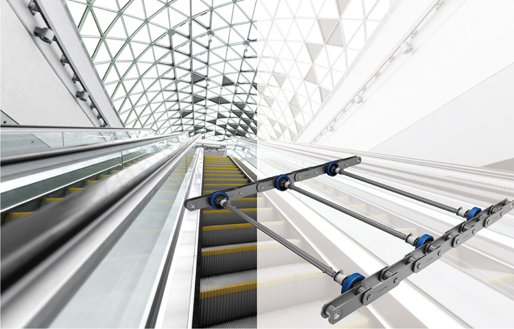 扶梯鏈條應用于自動扶梯和自動人行道系統,為其傳遞動力和輸送乘客。扶梯鏈條隨同自動扶梯等設施一起廣泛應用于地鐵、高鐵、機場、高端商場、超市等場所,包括各種驅動鏈、自動扶梯梯級鏈和自動人行道踏板鏈等。