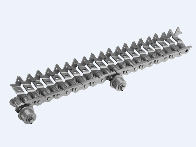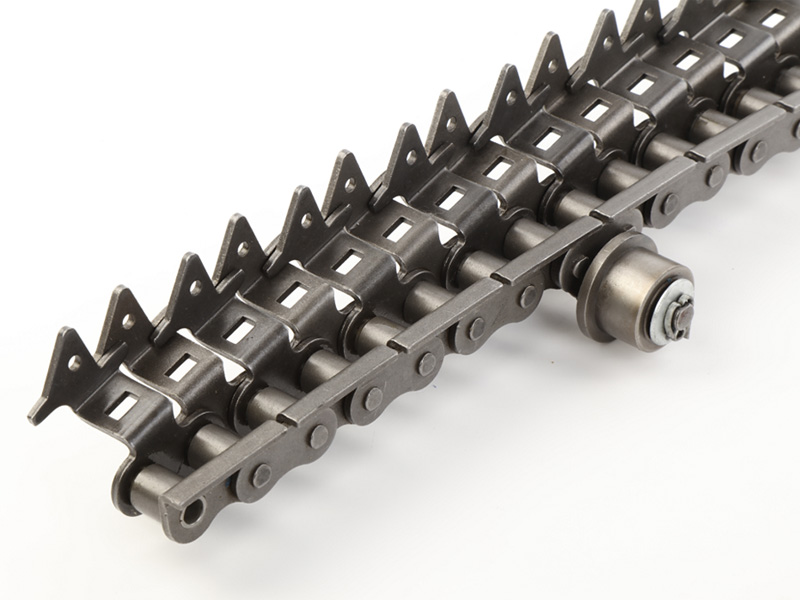 ● 印鐵烘房線鏈條是在標準短節(jié)距精密滾子鏈作為基鏈的基礎上加裝特殊附件的鏈條;典型產(chǎn)品結構為一側(cè)通過安裝內(nèi)、外支撐片來保持鏈條直線度,另一側(cè)通過內(nèi)外附板安裝花架運輸物品。