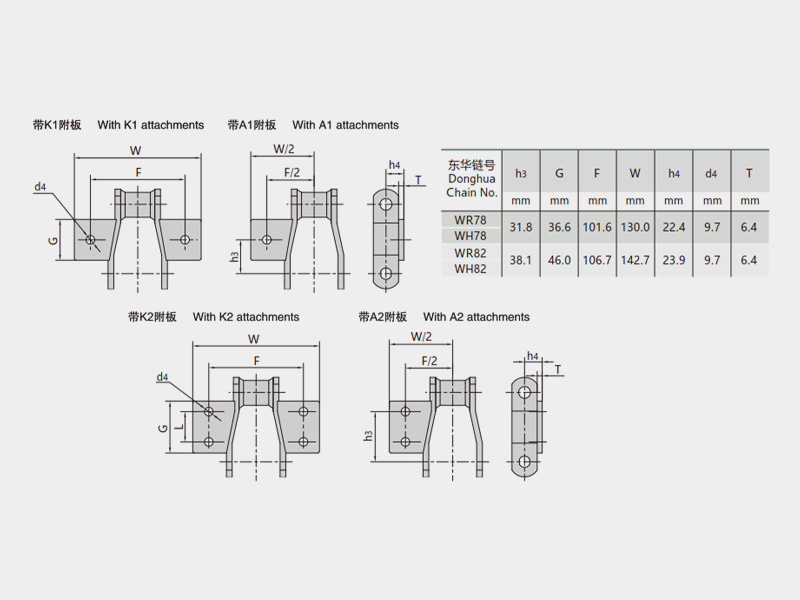 ● 工程用焊接結(jié)構(gòu)彎板鏈按照ASME B29.16M《鋼制焊接工程鏈、附件和鏈輪齒形》和ISO 6972《焊接結(jié)構(gòu)工程用彎板鏈、附件和鏈輪》設(shè)計和制造,有多種附件可供選擇,也可以按照用戶需求進(jìn)行定制開發(fā)。